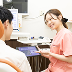 患者さんに親近感を持ってもらい、満足感を提供できる歯科医院を目指しています。それには私たちがベストと考える治療を押し付けず、患者さんとコミュニケーションをとり、適切で分かり易い情報の提供をし、その上で治療をすることが大切だと考えています。患者さんによって進行具合に差はありますが、どのような状況であるのか、次はどんな治療をするのかの目安をお伝えするようにしています。